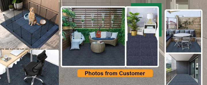 【Efficient Drainage Design】From the front, our patio deck tiles is composed of carpet.For the back, the rhombic structure design not only increases friction to prevent slipping, increase the stability and firmness, but also is not easy to accumulate water, increases the air flow space and easy to keep floor neat.