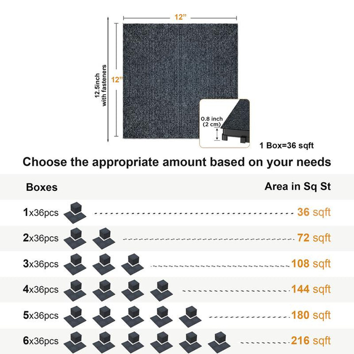 36 Pack Interlocking Carpet Tile, Patio carpet Floor Tiles, 12x12in Square Waterproof Deck Tiles All Weather Use,for indoor, Room, Room Home Paror Bedroom