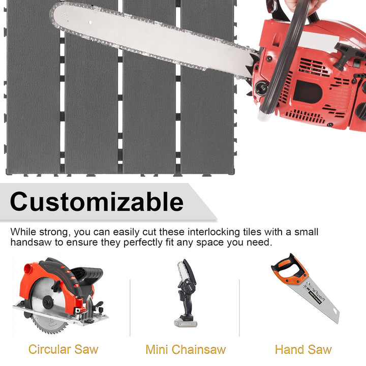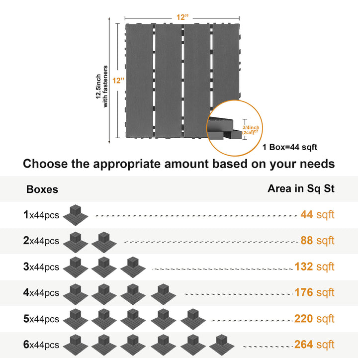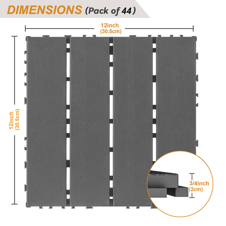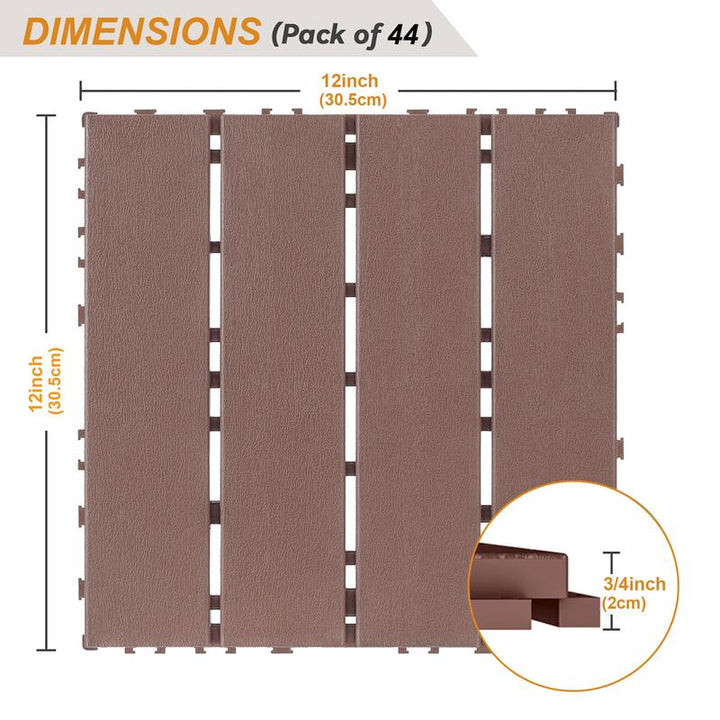 44 Pack Interlocking Deck Tile, Patio Deck Tiles,12x12in Square Waterproof Flooring Tiles All Weather Use, for Outdoor, Indoor, Poolside, Balcony, Backyard