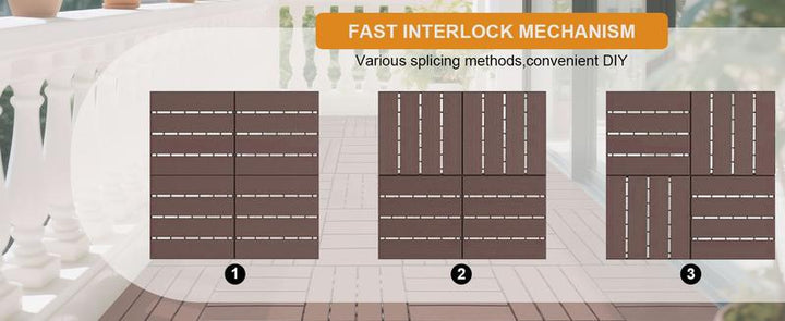 【Zero Hassle, Easy to Clean】This interlocking floor tiles is easy to clean.Just flushed with water and other cleaning tools.Very suitable for lazy people or busy family to make your life more convenient with using our decking outdoor flooring .