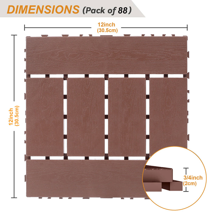 【Zero Hassle, Easy to Clean】This interlocking floor tiles is easy to clean.Just flushed with water and other cleaning tools.Very suitable for lazy people or busy family to make your life more convenient with using our decking outdoor flooring .