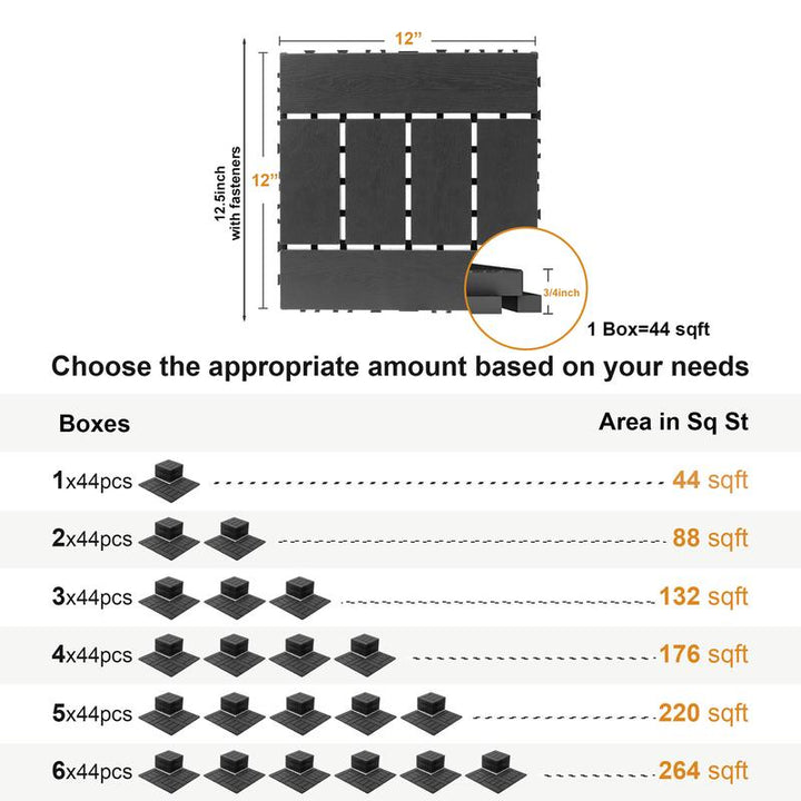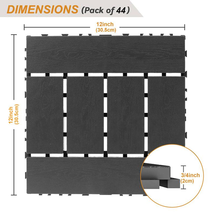 44 Pack H Type Interlocking Deck Tile, Patio Deck Tiles,12x12in Square Waterproof Flooring Tiles All Weather Use, for Outdoor, Indoor, Poolside, Balcony, Backyard