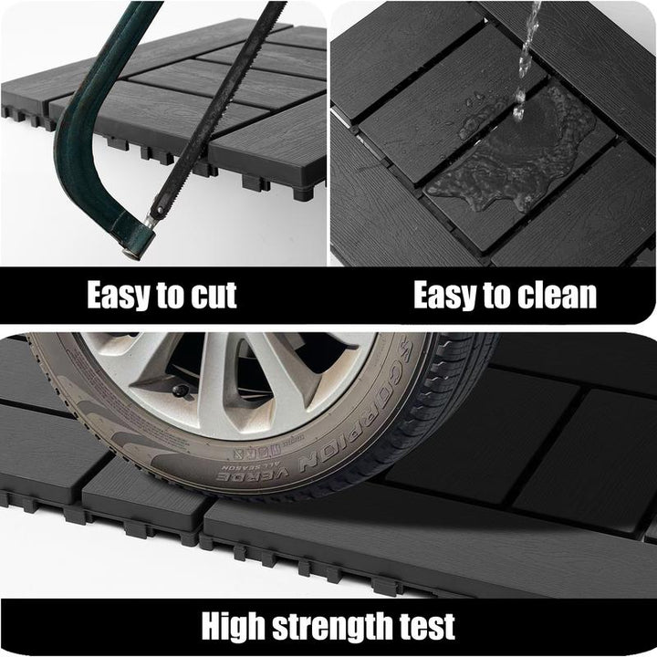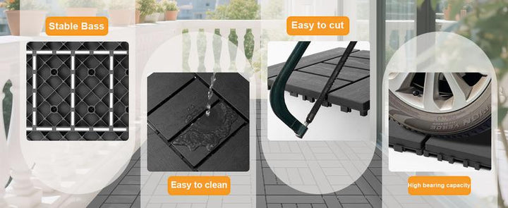 【Customizable & Versatile Use】Use a saw or other cutting tool to cut the plastic floors to the size you want.Fitting for putting this balcony deck tile in your patio deck, pools, garden, soft lawn, backyard, porch, outdoor playground, walkway and the other outside places.Or using in your bathroom, living room and the other indoor areas.